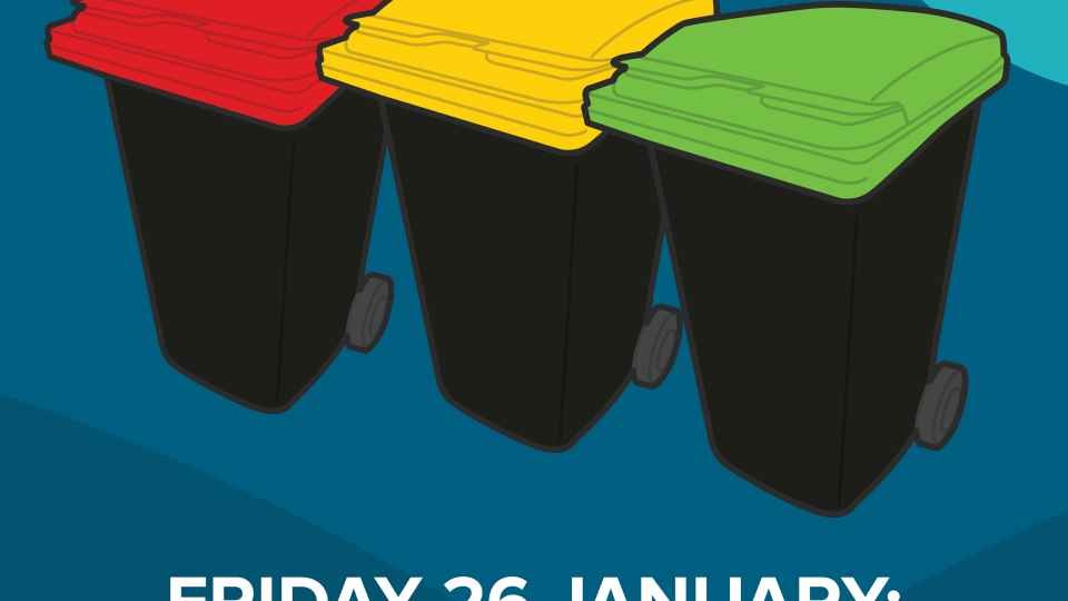There are no changes to the bin collection schedule for this Friday's public holiday. Kerbside bins and nappies will be collected as normal on Friday 26 January 2024. Read more